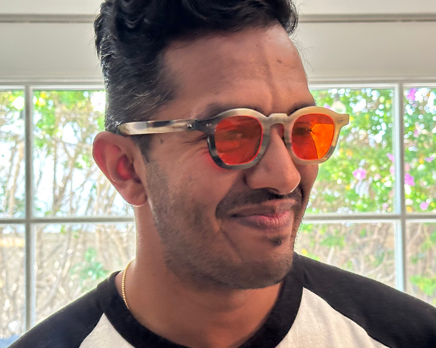The warm tint indicates strong reduction of blue and green light wavelengths most associated with circadian disruption. Clear lenses claiming to do this don't work.